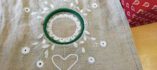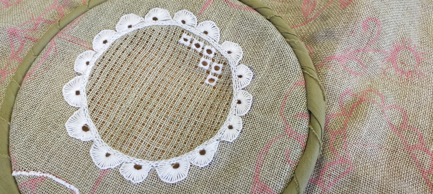Un très beau sujet de broderie : un polochon, avec différents points