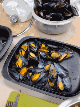 Et enfin, les moules qui mijotent dans la sauce tomate.