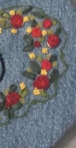 La petite pochette de Dolo, broderie au ruban sur du jean,